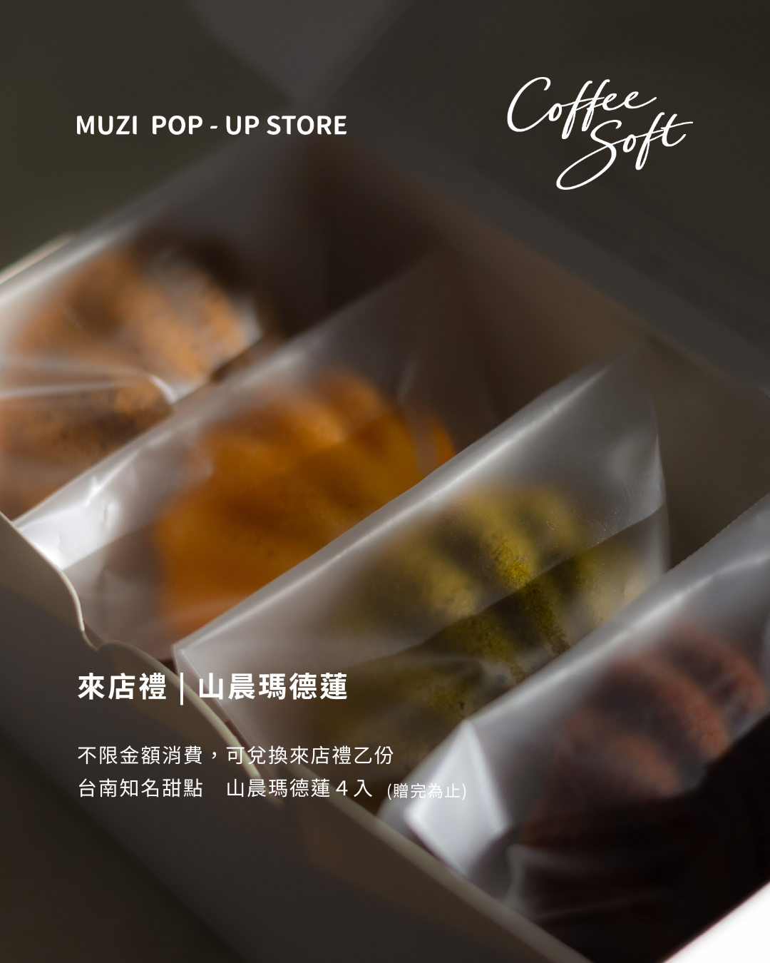 這些回饋,是 MUZI 想對每一次購買,說一聲謝謝。謝謝你選擇 MUZI,也謝謝你願意在 Coffee Soft 裡多停留一下。