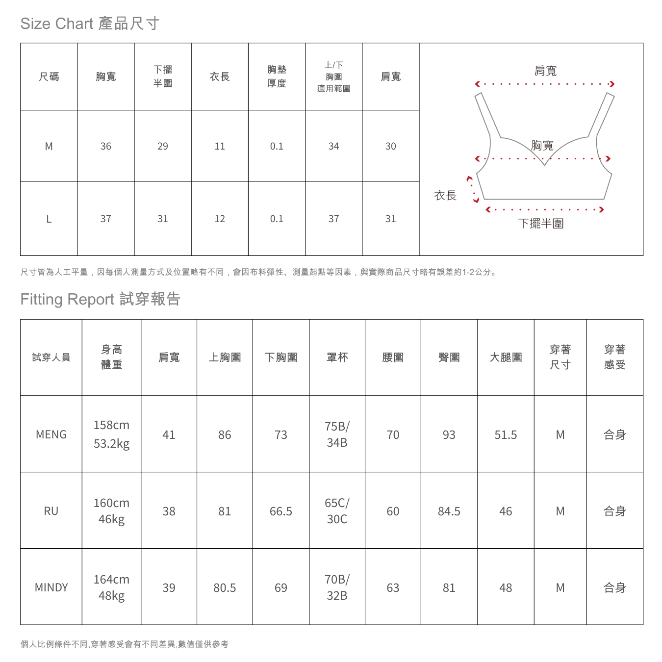 D 罩杯以上者因胸型較豐滿,