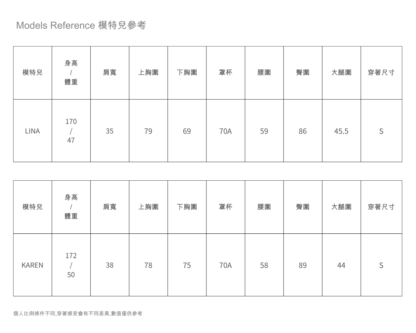 *下胸圍請以實際量測為準;量測方式請參考尺寸圖。