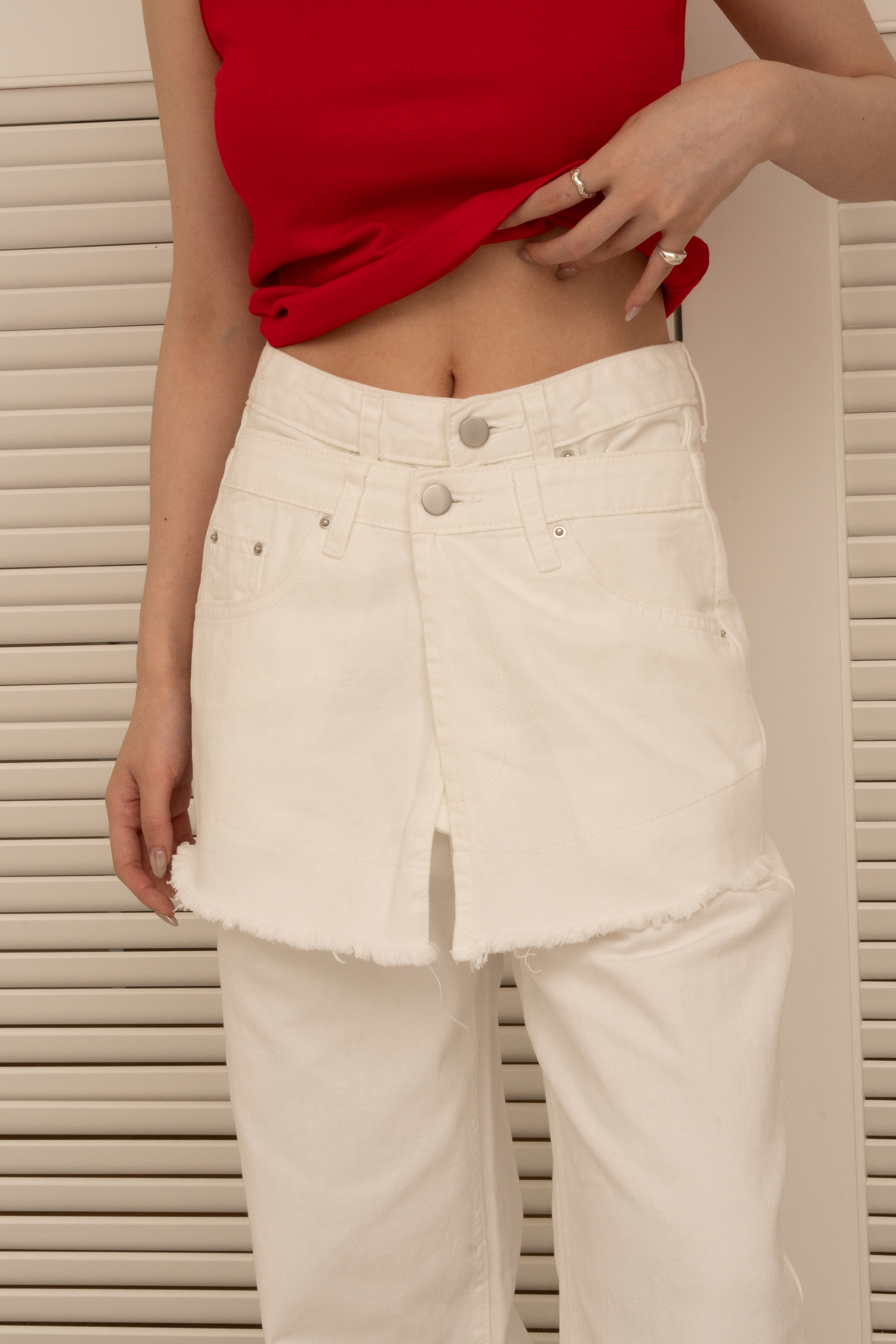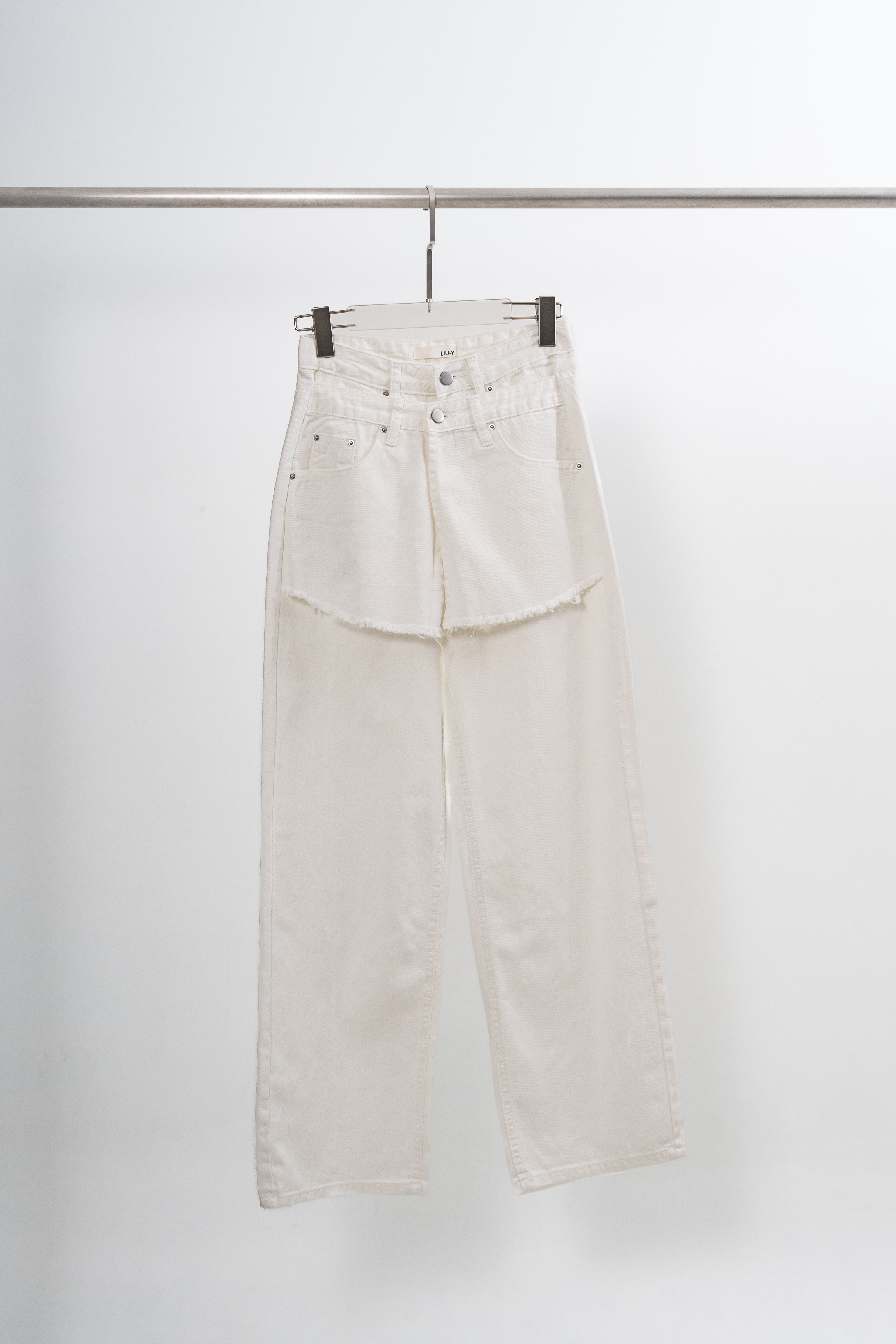 直筒褲版型 前褲檔 裙片設計 共6個口袋 牛仔面料